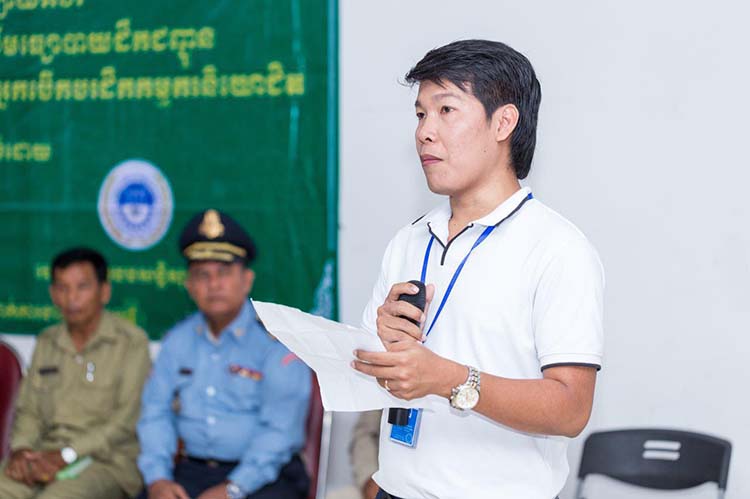 ← ឯកឧត្តម អ៊ុក សមវិទ្យា ប្រតិភូរាជរដ្ឋាភិបាលទទួលបន្ទុកជានាយកបេឡាជាតិរបបសន្តិសុខសង្គម នៅក្នុងពិធីចែកបណ្ណបើកបរ ជូនអ្នកបើកបរយានយន្ដដឹកកម្មករនិយោជិតនៅរោងចក្រ SABRINA (CAMBODIA) GARMENT MANUFACTURING CORP ខេត្តកំពង់ស្ពឺ