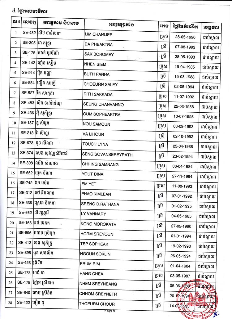 ← បញ្ជីរាយនាមបេក្ខជន-បេក្ខនារីដែលបានប្រឡងជាប់ជាស្ថាពរ និងជាប់បម្រុងការប្រឡងជ្រើសរើសបុគ្គលិកជាប់កិច្ចសន្យាចូលបម្រើការងារនៅ ប.ស.ស ឆ្នាំ២០១៨