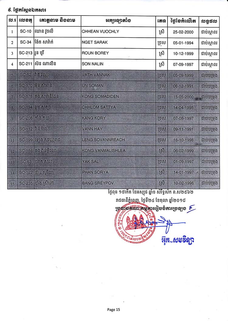 ← បញ្ជីរាយនាមបេក្ខជន-បេក្ខនារីដែលបានប្រឡងជាប់ជាស្ថាពរ និងជាប់បម្រុងការប្រឡងជ្រើសរើសបុគ្គលិកជាប់កិច្ចសន្យាចូលបម្រើការងារនៅ ប.ស.ស ឆ្នាំ២០១៨