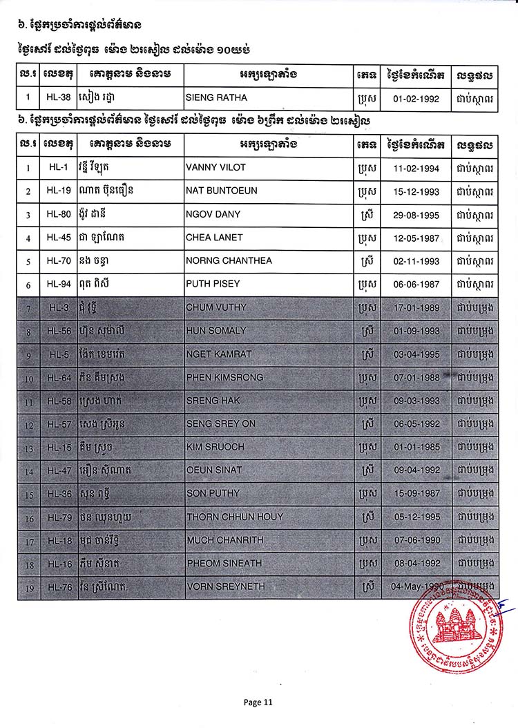 ← បញ្ជីរាយនាមបេក្ខជន-បេក្ខនារីដែលបានប្រឡងជាប់ជាស្ថាពរ និងជាប់បម្រុងការប្រឡងជ្រើសរើសបុគ្គលិកជាប់កិច្ចសន្យាចូលបម្រើការងារនៅ ប.ស.ស ឆ្នាំ២០១៨