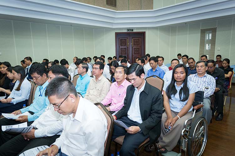 ← មន្រ្តីរាជការ និងមន្រ្តីជាប់កិច្ចសន្យា របស់ទីស្តីការគណៈរដ្ឋមន្រ្តី សរុបប្រមាណជាង ២០០នាក់ បានចូលរួមស្វែងយល់ ពីការធ្វើបទបង្ហាញដោយផ្ទាល់ពីសំណាក់ ឯកឧត្តម អ៊ុក សមវិទ្យា ទាក់ទងទៅនឹងគោលនយោបាយនៃការអនុវត្តរបបសន្តិសុខសង្គម