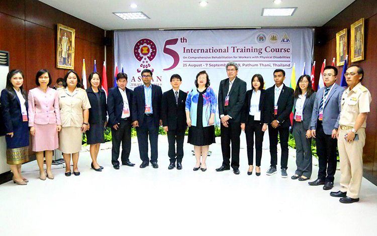 ← មន្ត្រីជំនាញ ប.ស.ស. កម្ពុជា និងសមាជិកអាស៊ានចំនួន ៥ប្រទេសទៀត បានចូលរួមវគ្គបណ្តុះបណ្តាល និងចែករំលែកពិសោធន៍ ស្តីពីការស្តារនីតិសម្បទាសម្រាប់កម្មករជាជនពិការរាងកាយ នៅប្រទេសថៃ