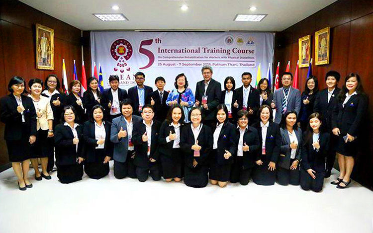 ← មន្ត្រីជំនាញ ប.ស.ស. កម្ពុជា និងសមាជិកអាស៊ានចំនួន ៥ប្រទេសទៀត បានចូលរួមវគ្គបណ្តុះបណ្តាល និងចែករំលែកពិសោធន៍ ស្តីពីការស្តារនីតិសម្បទាសម្រាប់កម្មករជាជនពិការរាងកាយ នៅប្រទេសថៃ