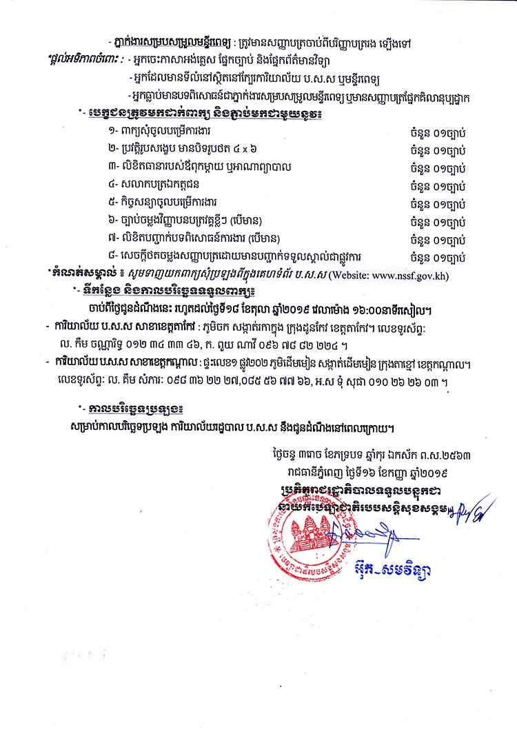← សេចក្ដីជូនដំណឹង ស្ដីពីការប្រឡងជ្រើសរើសបេក្ខជន-បេក្ខនារី ឲ្យចូលបម្រើការងារជាបុគ្គលិកជាប់កិច្ចសន្យា នៅបេឡាជាតិរបបសន្តិសុខសង្គមសាខាខេត្តតាកែវ និងកណ្ដាល