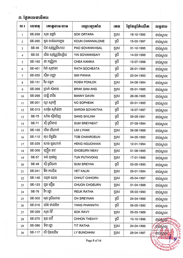 ← សេចក្ដីជូនដំណឹង ស្ដីពីការបង្ហាញខ្លួនរបស់បេក្ខជន-បេក្ខនារី ដែលបានប្រឡងជាប់ជាស្ថាពរ នៅបេឡាជាតិរបបសន្តិសុខសង្គម