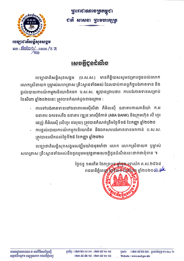 The announcement of paying contribution for September