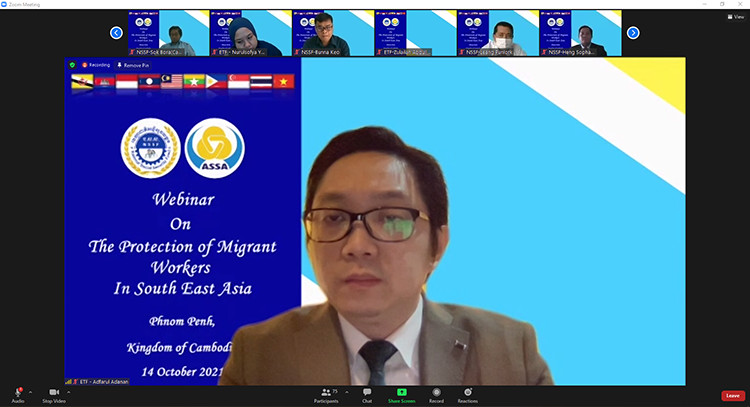 ← ប.ស.ស. កម្ពុជា ក្នុងនាមជាប្រធានសមាគមសន្តិសុខសង្គមអាស៊ានលើកទី៣៧ (The 37th ASSA Chairman) បានបើកសិក្ខាសាលាស្តីពី “ការគាំពារពលករទេសន្តរប្រវេសក៍ក្នុងតំបន់អាស៊ីអាគ្នេយ៍” ជូនដល់តំណាងសមាជិកអង្គភាពសមាគមសន្តិសុខសង្គមអាស៊ាន (ASSA) ចំនួន ២២ស្ថាប័ន នៃប្រទេសអាស៊ានទាំង ១០ តាមរយៈប្រព័ន្ធវីដេអូ (Zoom Meeting)