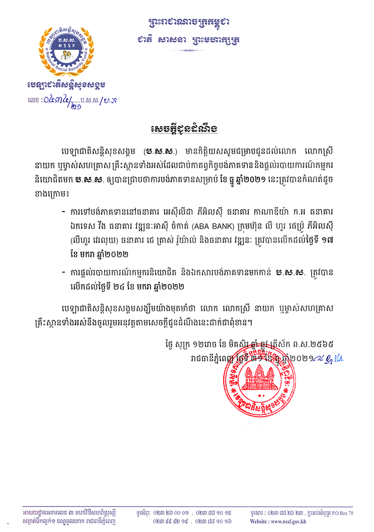 The announcement of paying contribution for January
