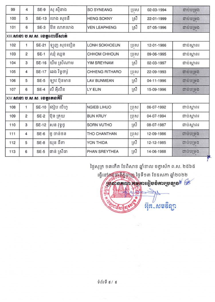 ← សេចក្ដីជូនដំណឹងស្ដីពីការបង្ហាញខ្លួនរបស់បេក្ខជន-បេក្ខនារី ដែលបានប្រឡងជាប់ជាស្ថាពរឲ្យចូលបម្រើការងារនៅបេឡាជាតិសន្តិសុខសង្គមសម្រាប់ឆ្នាំ២០២២