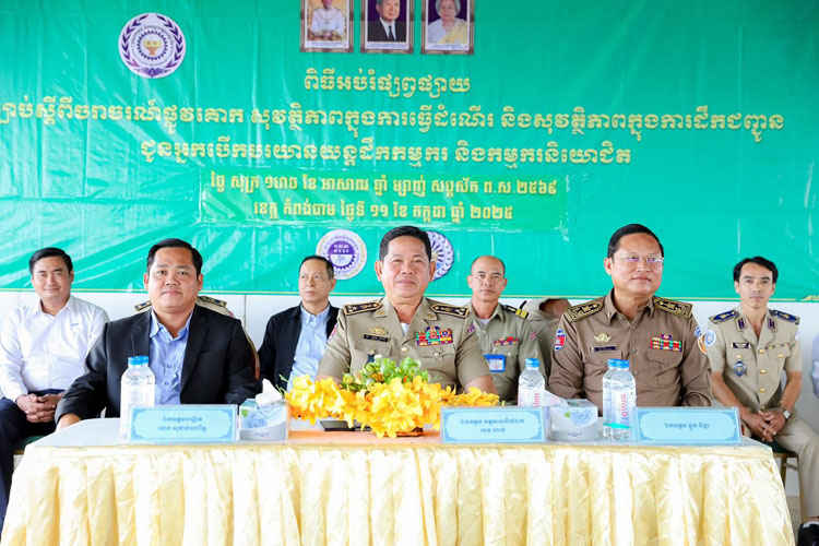 (កំពង់ចាម)៖ បេឡាជាតិសន្តិសុខសង្គម (ប.ស.ស.) នៃក្រសួងការងារ និងបណ្ដុះបណ្ដាលវិជ្ជាជីវៈ បានសហការជាមួយស្នងការដ្ឋានរាជធានី/ខេត្ត និងរោងចក្រ សហគ្រាស បង្កើនការអប់រំផ្សព្វផ្សាយច្បាប់ស្តីពី “ចរាចរណ៍ផ្លូវគោក” ជូនដល់អ្នកបើកបរយានយន្តដឹកកម្មករនិយោជិត ដើម្បីបង្កើនការយល់ដឹងចូលរួមកាត់បន្ថយអត្រាគ្រោះថ្នាក់ចរាចរណ៍មកនៅកម្រិតទាប និងធ្វើឱ្យកម្មករនិយោជិត ទទួលបាននូវផាសុកភាព និងសុវត្ថិភាព ក្នុងការធ្វើដំណើរ ស្របតាមអនុសាសន៍ណែនាំដ៏ខ្ពង់ខ្ពស់របស់សម្តេចមហាបវរធិបតី ហ៊ុន ម៉ាណែត នាយករដ្ឋមន្ត្រី នៃព្រះរាជាណាចក្រកម្ពុជា។