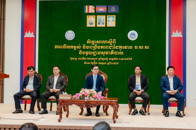 (កំពត)៖ ដោយទទួលបានការអនុញ្ញាតពីសំណាក់ឯកឧត្តម ម៉េង ហុង ប្រតិភូរាជរដ្ឋាភិបាលទទួលបន្ទុកជាអគ្គនាយក ប.ស.ស. នៃក្រសួងការងារ និងបណ្ដុះបណ្ដាលវិជ្ជាជីវៈ នៅព្រឹកថ្ងៃទី៦ ខែតុលា ឆ្នាំ២០២៥ នេះ លោក មាន ណាវិមន្ដ ប្រធាននាយកដ្ឋានសេវាមូលដ្ឋានសុខាភិបាល បានអញ្ជើញបើកសិក្ខាសាលាស្តីពី «ការលើកកម្ពស់ និងពង្រឹងភាពជាដៃគូរវាង ប.ស.ស. និងមូលដ្ឋានសុខាភិបាល» ដល់តំណាងមូលដ្ឋានសុខាភិបាល មកពីខេត្តចំនួន៥ រួមមាន ខេត្តកំពត ខេត្តតាកែវ ខេត្តកណ្តាល ខេត្តព្រះសីហនុ និងខេត្តកំពង់ស្ពឺ ប្រមាណជា ១៣០នាក់។