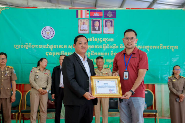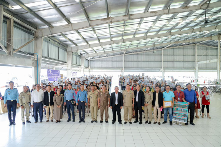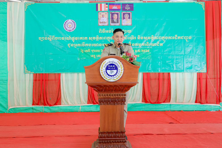 (កោះកុង)៖ នាព្រឹកថ្ងៃទី១៨ ខែតុលា ឆ្នាំ២០២៥នេះ ឯកឧត្តមបណ្ឌិត ហេង សុផាន់ណារិទ្ធ អគ្គនាយករង ប.ស.ស. និងជាប្រធានក្រុមការងារសុវត្ថិភាពចរាចរណ៍ផ្លូវគោកសម្រាប់គាំពារកម្មករនិយោជិត (ស.ផ.ក) តំណាង ឯកឧត្តម ម៉េង ហុង ប្រតិភូរាជរដ្ឋាភិបាលទទួលបន្ទុកជាអគ្គនាយក ប.ស.ស. នៃក្រសួងការងារ និងបណ្ដុះបណ្ដាលវិជ្ជាជីវ: បានអញ្ជើញជាសហធិបតីក្នុងពីធីបើកកម្មវិធីអប់រំផ្សព្វផ្សាយ “ច្បាប់ស្តីពីចរាចរណ៍ផ្លូវគោក និងសុវត្ថិភាពក្នុងការធ្វើដំណើររបស់កម្មករនិយោជិតជូនអ្នកបើកបររថយន្តដឹកជញ្ជូនកម្មករនិយោជិត និងកម្មករនិយោជិត” នៅរោងចក្រ KKN APPAREL CO., LTD ដែលមានអ្នកចូលរួមប្រមាណជាង ៤៥០នាក់។